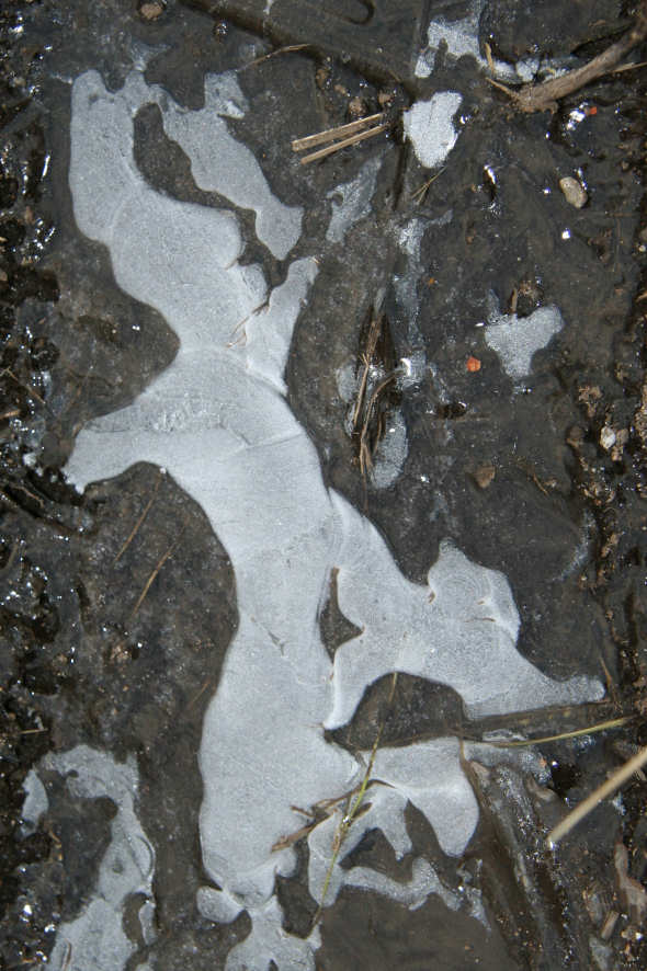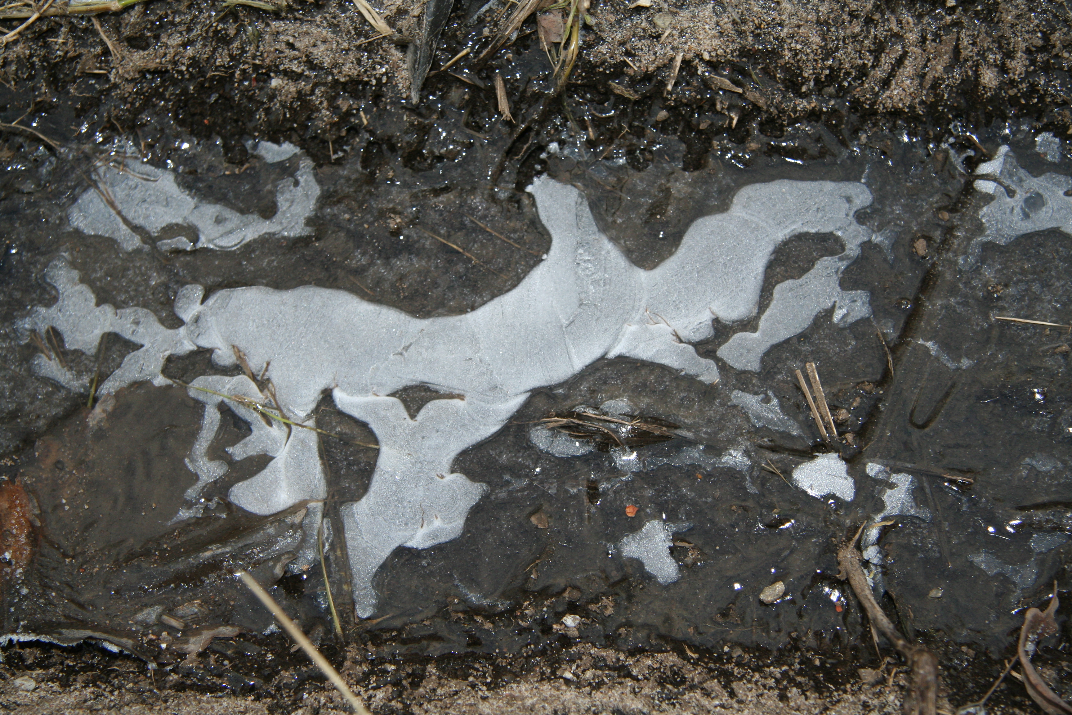 Als eerbetoon aan de choreograaf Rudi van Dantzig, die dezer dagen 75 is geworden. Een dichtgevroren waterplas met daarin wat opengebarsten luchtbellen. Ik zag er meteen een danser in, met een wapperende muts en wijde broekspijpen, als Pulcinella uit het stuk van Stravinsky. Dat past wel bij de expressieve dansen die Van Dantzig heeft gemaakt. En in de vrieskou stijgt er ook nog een wolkje dampende adem omhoog uit de mond van de danser…