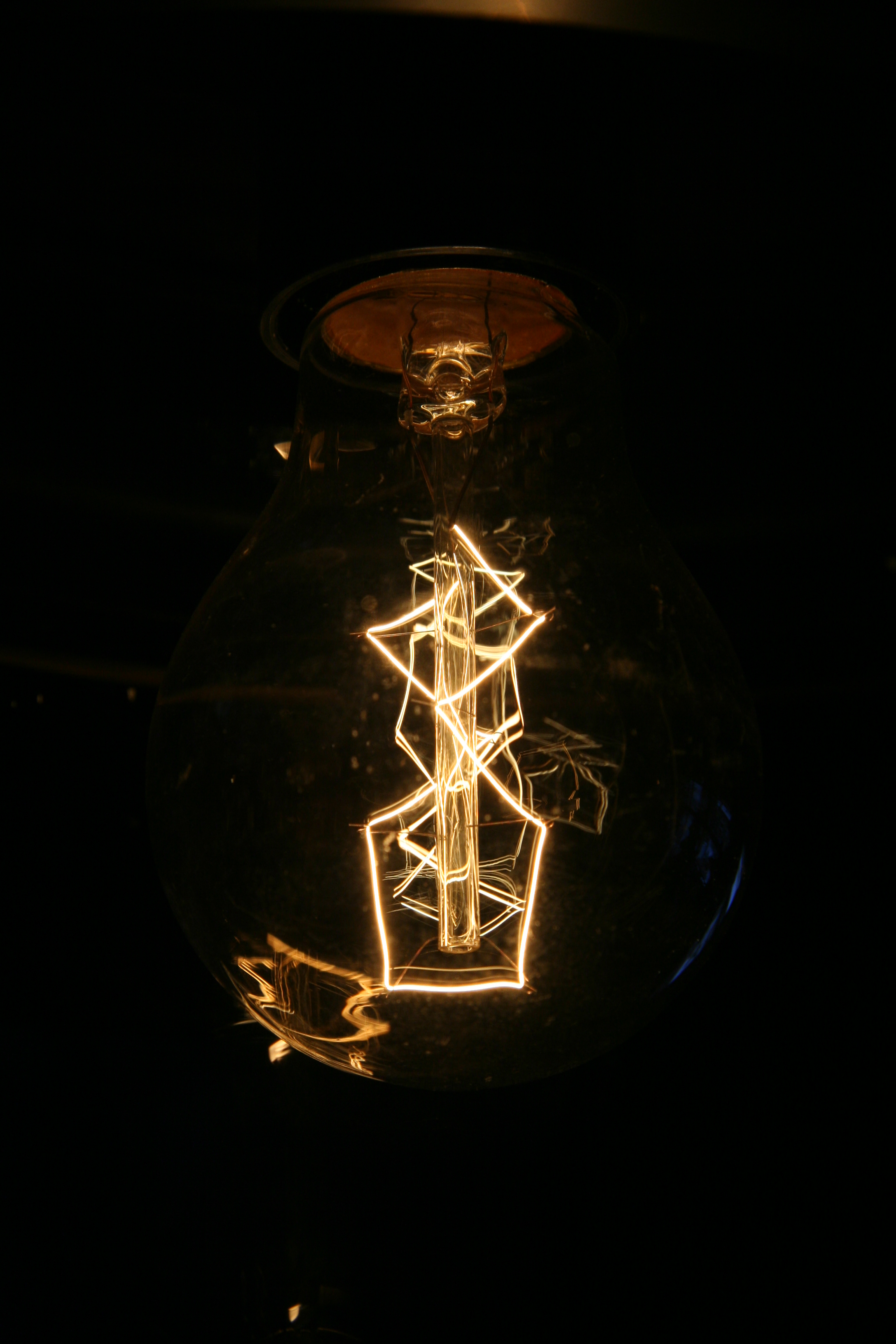 Kroeg op Texel. Mooie ouwe gloeilampen boven de tafels, van het soort dat nog net mag. Bij één zo'n lamp heeft de gloeidraad zich in vreemde kronkels gebogen, die op hun beurt weer kronkelig worden weerspiegeld in het glas van de lamp. Dit is een kroeg waar ze zelfs de gloeilampen nog netjes schoonpoetsen, anders had ik deze foto niet zo kunnen nemen.