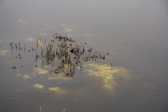 Een winterse wandeling door de slufter op Texel leverde dit plaatje van een bevroren plas op. De ingevroren plantenresten doen mij denken aan Monet, en de ingevroren ‘golfjes’ versterken dat beeld.