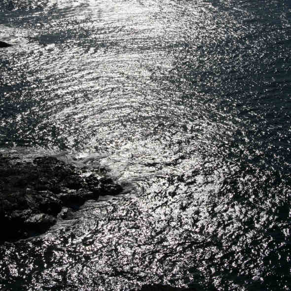 Playa del Papagayo op Lanzarote, één van de Canarische Eilanden. Op oudejaarsdag is het daar net zo zonnig als op iedere andere dag van het jaar, alleen staat de zon er bijna op zijn laagst. Dat geeft het wateroppervlak de aanblik van geciseleerd zilver.